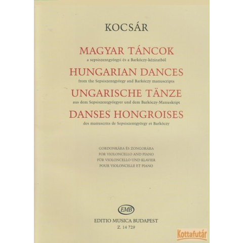 Kocsár Miklós EMB 14729 Gordonkára és zongorára A szerző írja a két táncfüzért tartalmazó kiadványról: 'Pár évvel ezelőtt egyik jeles tárogatóművészünk arra kért, hogy készülő új lemezének néhány 18. századi dallamához készítsek kíséretet. Ez