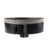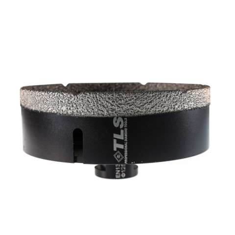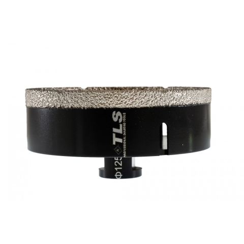 TLS COBRA gyémántszemcsés lyukfúró Átmérő: d=125 mm (M14 menetes csatlakozás) Alkalmazás: száraz és vizes Alkalmazási terület: Gres, kőporcelán, kemény kerámiák, gránit, márvány, természetes kövek, tégla, beton, szikla, egyéb építőipari anyagok TLS C