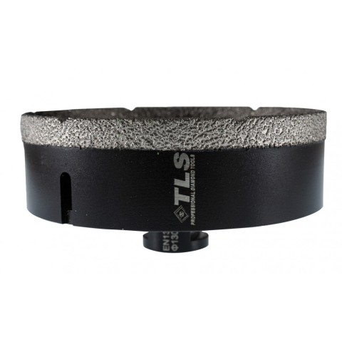 TLS COBRA gyémántszemcsés lyukfúró Átmérő: d=130 mm (M14 menetes csatlakozás) Alkalmazás: száraz és vizes Alkalmazási terület: Gres, kőporcelán, kemény kerámiák, gránit, márvány, természetes kövek, tégla, beton, szikla, egyéb építőipari anyagok TLS C