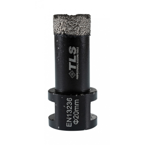 TLS COBRA gyémántszemcsés lyukfúró Átmérő: d=20 mm (M14 menetes csatlakozás) Alkalmazás: száraz és vizes Alkalmazási terület: Gres, kőporcelán, kemény kerámiák, gránit, márvány, természetes kövek, tégla, beton, szikla, egyéb építőipari anyagok TLS CO