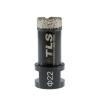 TLS COBRA gyémántszemcsés lyukfúró Átmérő: d=22 mm (M14 menetes csatlakozás) Alkalmazás: száraz és vizes Alkalmazási terület: Gres, kőporcelán, kemény kerámiák, gránit, márvány, természetes kövek, tégla, beton, szikla, egyéb építőipari anyagok TLS CO