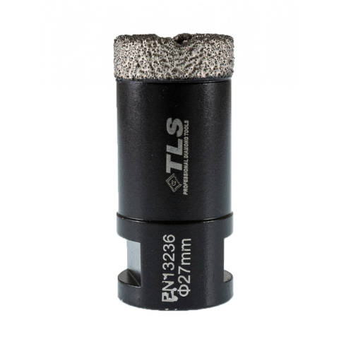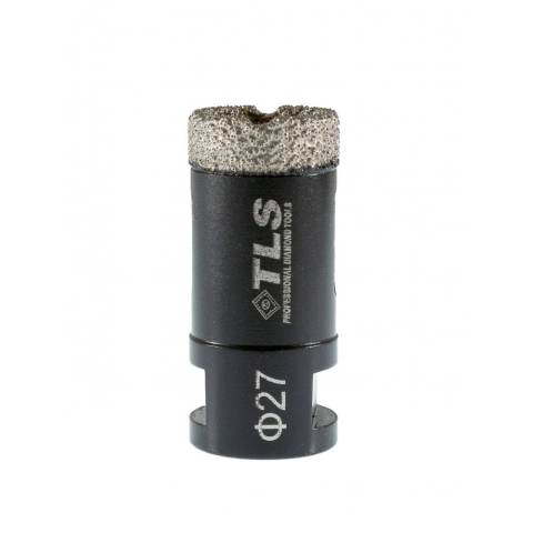 TLS COBRA gyémántszemcsés lyukfúró Átmérő: d=27 mm (M14 menetes csatlakozás) Alkalmazás: száraz és vizes Alkalmazási terület: Gres, kőporcelán, kemény kerámiák, gránit, márvány, természetes kövek, tégla, beton, szikla, egyéb építőipari anyagok TLS CO