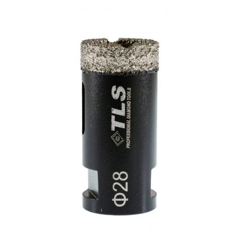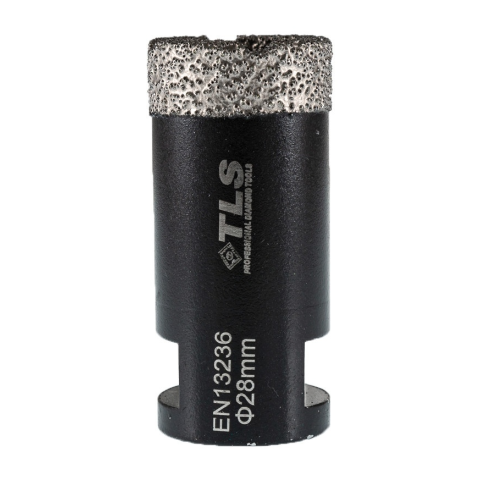 TLS COBRA gyémántszemcsés lyukfúró Átmérő: d=28 mm (M14 menetes csatlakozás) Alkalmazás: száraz és vizes Alkalmazási terület: Gres, kőporcelán, kemény kerámiák, gránit, márvány, természetes kövek, tégla, beton, szikla, egyéb építőipari anyagok TLS CO