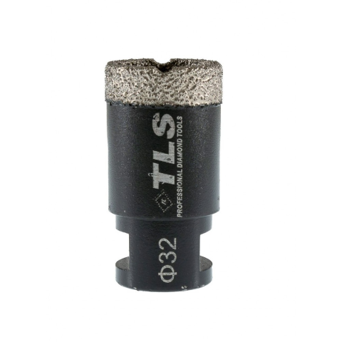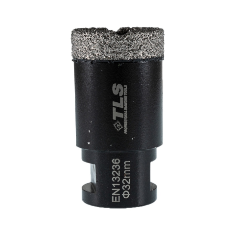 TLS COBRA gyémántszemcsés lyukfúró Átmérő: d=32 mm (M14 menetes csatlakozás) Alkalmazás: száraz és vizes Alkalmazási terület: Gres, kőporcelán, kemény kerámiák, gránit, márvány, természetes kövek, tégla, beton, szikla, egyéb építőipari anyagok TLS CO