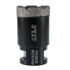 TLS COBRA gyémántszemcsés lyukfúró Átmérő: d=35 mm (M14 menetes csatlakozás) Alkalmazás: száraz és vizes Alkalmazási terület: Gres, kőporcelán, kemény kerámiák, gránit, márvány, természetes kövek, tégla, beton, szikla, egyéb építőipari anyagok TLS CO