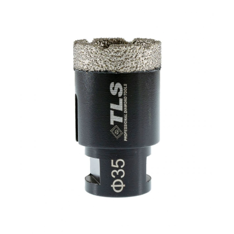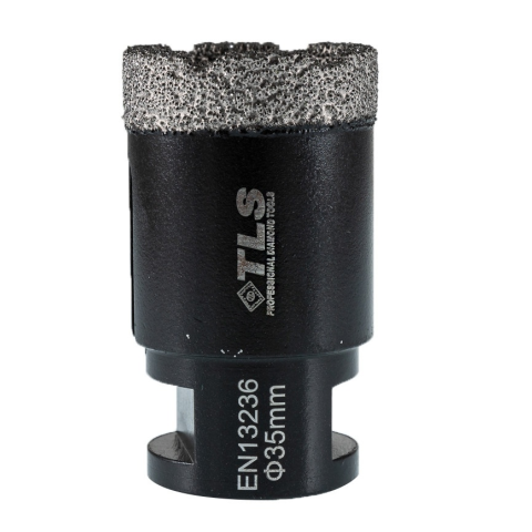 TLS COBRA gyémántszemcsés lyukfúró Átmérő: d=35 mm (M14 menetes csatlakozás) Alkalmazás: száraz és vizes Alkalmazási terület: Gres, kőporcelán, kemény kerámiák, gránit, márvány, természetes kövek, tégla, beton, szikla, egyéb építőipari anyagok TLS CO