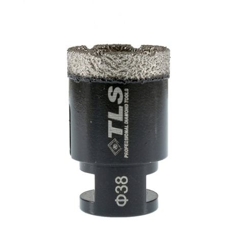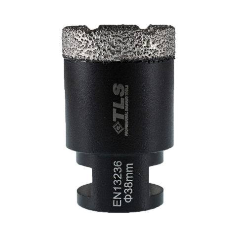 TLS COBRA gyémántszemcsés lyukfúró Átmérő: d=38 mm (M14 menetes csatlakozás) Alkalmazás: száraz és vizes Alkalmazási terület: Gres, kőporcelán, kemény kerámiák, gránit, márvány, természetes kövek, tégla, beton, szikla, egyéb építőipari anyagok TLS CO