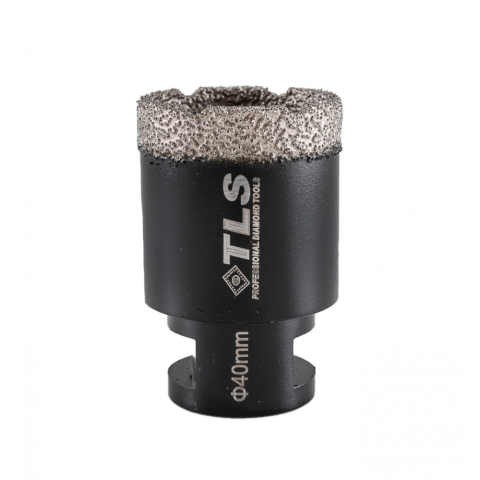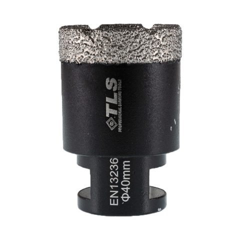 TLS COBRA gyémántszemcsés lyukfúró Átmérő: d=40 mm (M14 menetes csatlakozás) Alkalmazás: száraz és vizes Alkalmazási terület: Gres, kőporcelán, kemény kerámiák, gránit, márvány, természetes kövek, tégla, beton, szikla, egyéb építőipari anyagok TLS CO
