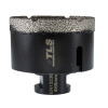 TLS COBRA gyémántszemcsés lyukfúró Átmérő: d=68 mm (M14 menetes csatlakozás) Alkalmazás: száraz és vizes Alkalmazási terület: Gres, kőporcelán, kemény kerámiák, gránit, márvány, természetes kövek, tégla, beton, szikla, egyéb építőipari anyagok TLS CO