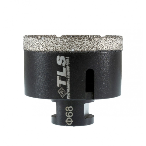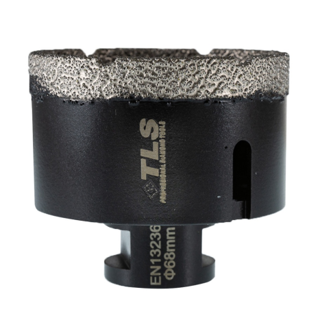 TLS COBRA gyémántszemcsés lyukfúró Átmérő: d=68 mm (M14 menetes csatlakozás) Alkalmazás: száraz és vizes Alkalmazási terület: Gres, kőporcelán, kemény kerámiák, gránit, márvány, természetes kövek, tégla, beton, szikla, egyéb építőipari anyagok TLS CO