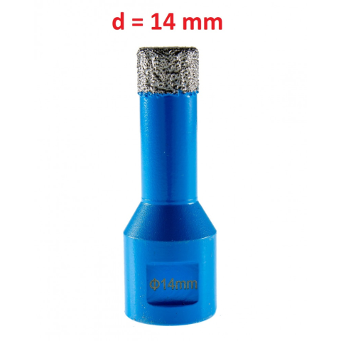 TLS COBRA-PRO gyémántszemcsés lyukfúró Átmérő: d=14 mm (M14 menetes csatlakozás) Alkalmazás: száraz és vizes Alkalmazási terület: Gres, kőporcelán, kemény kerámiák, gránit, márvány, természetes kövek, tégla, beton, szikla, egyéb építőipari anyagok TL