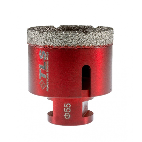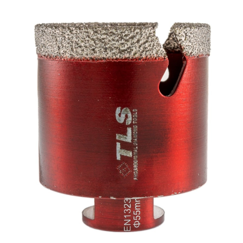 TLS VIPER gyémántszemcsés lyukfúró Átmérő: d=55 mm (M14 menetes csatlakozás) Szegmensmagasság: 10 mm Alkalmazás: száraz és vizes Alkalmazási terület: Gres, kőporcelán, kemény kerámiák, gránit, márvány, természetes kövek, tégla, beton, szikla, egyéb építői