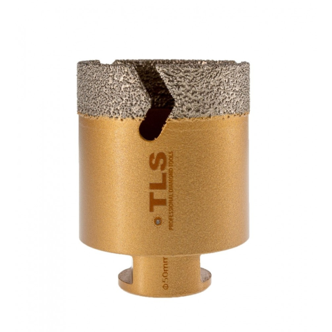 TLS VIPER PRO gyémántszemcsés lyukfúró Átmérő: d=50 mm (M14 menetes csatlakozás) Szegmensmagasság: 15 mm Alkalmazás: száraz és vizes Alkalmazási terület: Gres, kőporcelán, kemény kerámiák, gránit, márvány, természetes kövek, tégla, beton, szikla, egyéb ép