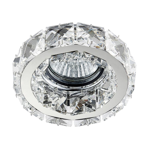 A Süllyesztett kristály spot lámpa, króm - Crystals Emithor 71055 egy modern stílusú, álmennyezetbe süllyeszthető, fix kivitelű világítótest, amely egy GU10 foglalattal rendelkezik. A lámpatest anyaga kristály és acél, színe áttetsző és króm, mely elegáns