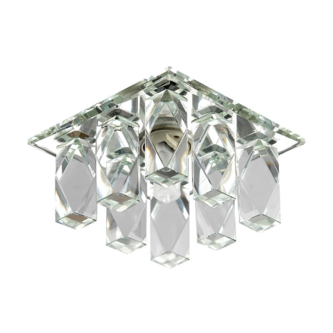 A Süllyesztett szögletes kristály spot lámpa, króm - Crystals Emithor 71075 egy modern stílusú, álmennyezetbe süllyeszthető, fix kivitelű világítótest, amely egy darab G9-es foglalattal rendelkezik. A lámpatest fő anyagai a kristály, üveg és fém, amelyek