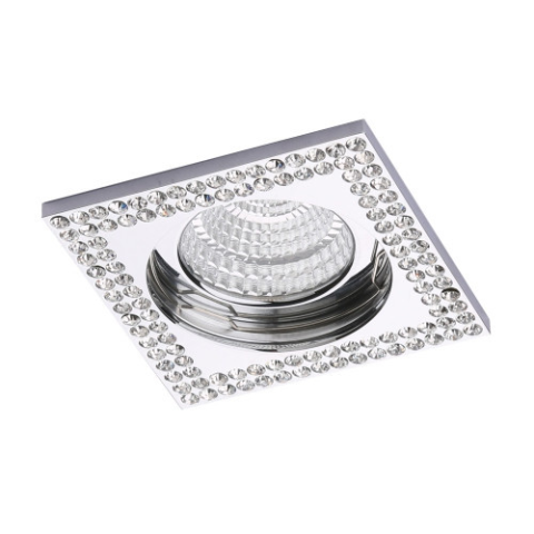 A Crystals Emithor 71077 süllyesztett szögletes spot lámpa modern stílusban, kristály kövekkel és króm színű alumínium testtel készül. A lámpatest mérete 71x71 mm, magassága 4 mm, kivágási mérete 60 mm. Egy darab GU10 foglalattal rendelkezik, a fényforrás