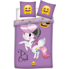 Emoji Unicorn, Unikornis ágyneműhuzat 140×200cm, 70×90 cm Anyaga:100% pamut. Kitűnő színtartó anyagból készül. Minősége: I osztályú. Mérete: 140×200cm, 70×90 cm