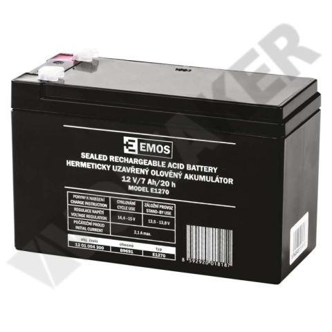 1 kép Emos 12V 7Ah zárt savas ólom akku 151*65*95 F1 csatlakozóval, Emos