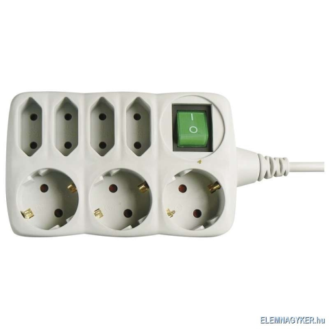 Termék leírás: 1,5 m-es 250 V~ SCHUKO hosszabbító kábel, amellyel konnektortól távoli helyeken is megoldható az áramellátás. Termék jellemzői: hossz 1,5 m aljzatok száma 3× 2P + PE + 4× 2P SCHUKO kapcsoló igen feszültség/áram 250 V~/10 A