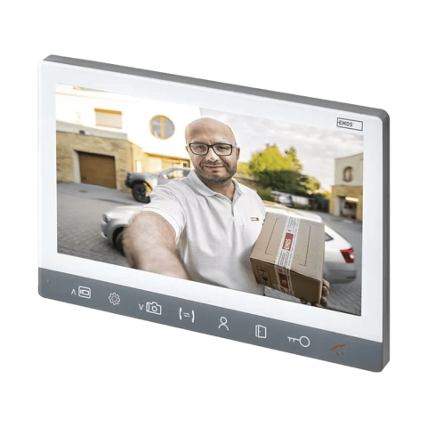 7“ LCD monitor Em-10Ahd video-kaputelefonhoz Lenyűgöző, csúcsminőségű full HD-s, színes kijelzős monitor az Em-10Ahd video-kaputelefonhoz. A tökéletesen éles és jó minőségű kép mellett lehetőséget nyújt több képernyő sorban történő csatlakoztatására is, ezáltal biztosítva az egyes kaputelefon képernyők közötti kölcsönös hívást, az intercom-ot. Ha megszólal a csengő, a belső 7" LCD-monitor minden látogatót megmutat, akár világos van kint, akár kor