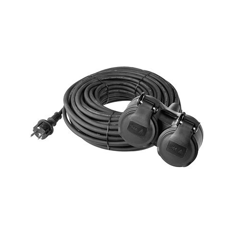 Hosszabbító kábel - hosszúság 25 m, male csatlakozó 1× e-típusú dugvilla, female csatlakozó 2× e-típusú dugalj akár 16 A, egyenes végződés A(z) EMOS gumi hosszabbító kábel, 25m, fekete egy 2 aljzattal ellátott hálózati hosszabbító. A hálózathoz és az elektromos készülékekhez E típusú villa és Hosszabbító kábel konnektorral csatlakozik. A