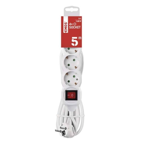 1 kép Emos Kábel hosszabbító EMOS 4 aljzat 5m kapcsolóval fehér