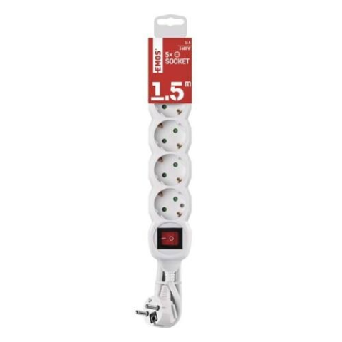 1 kép Emos Kábel hosszabbító EMOS 5 aljzat 1,5m kapcsolóval fehér