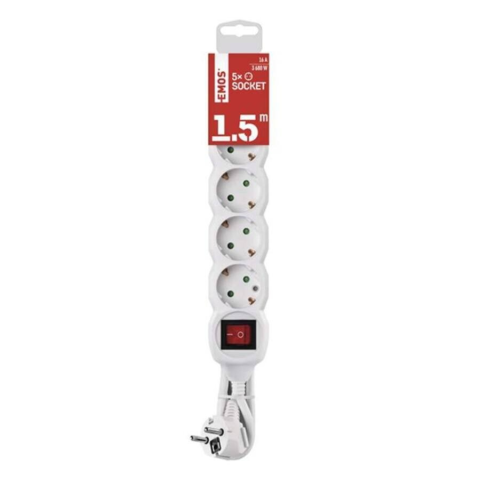 Kábel hosszabbító EMOS 5 aljzat 1,5m kapcsolóval fehér - 11.00898 - Kábelek, elosztók, csatlakozók, átalakítók -