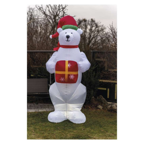 1 kép Emos LED jegesmedve karácsonyi ajándékkal, felfújható, 240cm, kültérre és beltérre, hideg fehér