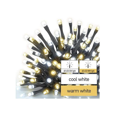 2 kép    Emos LED karácsonyi fényfüzér, 12 m, kültéri és beltéri, meleg/hideg fehér, időzítő