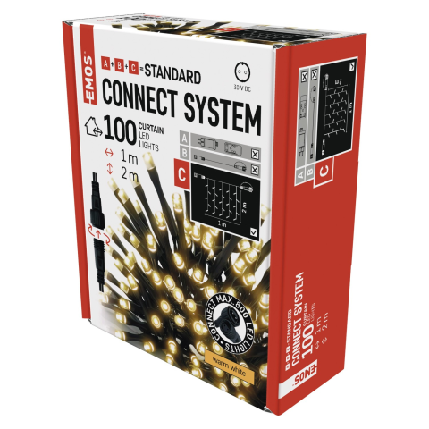 1 kép Emos Led sorolható fényfüggöny meleg fehér 1x2m