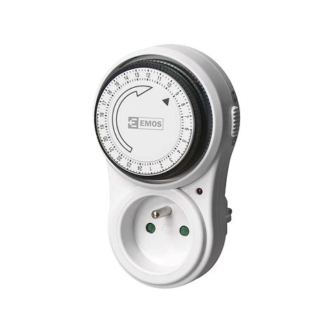 Aljzat - időzíthető, maximális terhelés 3 680 W, feszültség/áramerősség 230 V /16 A max. Ez egy olyan csatlakozó, amellyel időzítheti a konnektor működését, sőt, bizonyos fokú védelmet nyújt a gyermekek számára, és megfelel az IP20-as szabályzatnak. A ciklus időzítése beállítható15 p
