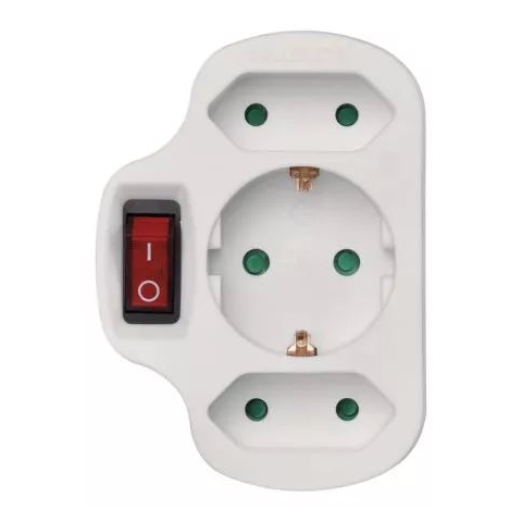 Átalakító, 3 csatlakozóaljzat, földelt, 90 fokban elforgatott