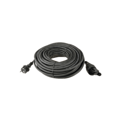 30 m-es 250 V~ gumi Schuko hosszabbító kábel, amellyel konnektortól távoli helyeken is megoldható az áramellátás.