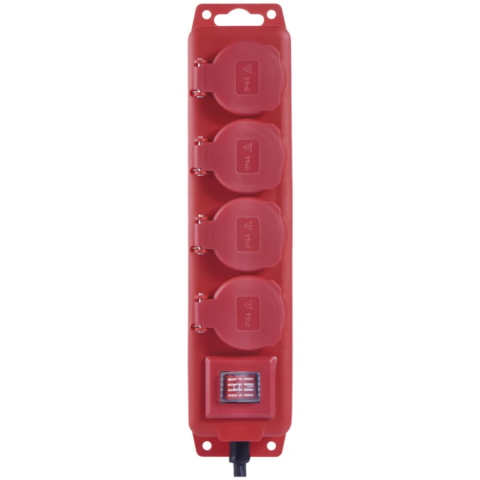 HOSSZABBÍTÓ 10 M / 4 ALJZAT / KAPCSOLÓS / 1,5 MM2 A legfontosabb paraméterek hossz 10 m aljzatok száma 4× 2P + PE SCHUKO IP44 kapcsoló feszültség/áram 250 V~/16 A max. szín fekete/piros Egyéb paraméterek vezeték H07RN-F3G 1,5 mm² gyere