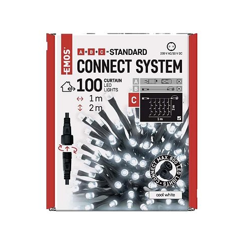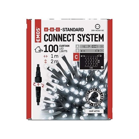 2 kép    Emos Standard LED sorolható karácsonyi fényfüzér – fényfüggöny, 1x2 m, kültéri, hideg fehér