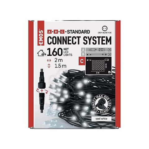 2 kép    Emos Standard LED sorolható karácsonyi fényfüzér - háló, 1,5x2 m, kültéri, hidegfehér
