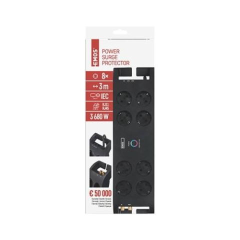 1 kép Emos Túlfeszültség védő EMOS 8 aljzat 3m 1800j fekete