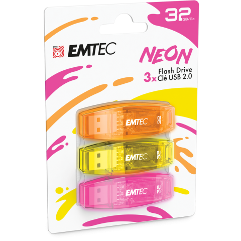 1 kép Emtec 32GB Neon USB 2.0 Pendrive - Vegyes színek (3db) (ECMMD32GC410P3NEO) Pendrive