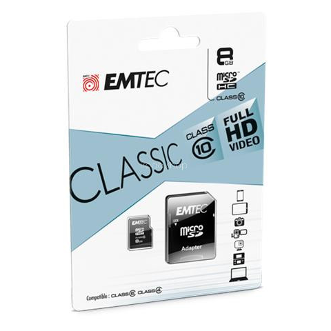 1 kép Emtec Memóriakártya, microSD, 8GB, 20/12 MB/s, EMTEC "Classic"