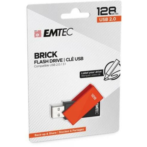Pendrive, 128GB, USB 2.0, EMTEC "C350 Brick", narancssárga - UE128GB - 128GB-os USB pendrive-ok - Vigyen színt a hétköznapokba az EMTEC pendrive-jaival! -kupak nélküli, elforgatható kivitel