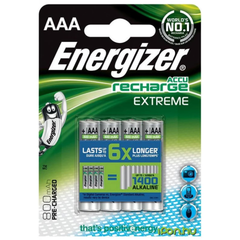 AKKUMULÁTOR AAA MIKRO 800MAH EXTREME 4 DB/CSOMAG, ENERGIZER Az Energizer AAA Extreme újratölthető NiMH akkumulátorok hosszú élettartamot és megbízható teljesítményt biztosítanak különböző nagy energiaigényű eszközökben. A 4 darabos csomag ideális válas
