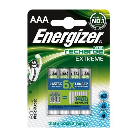 1 kép ENERGIZER Tölthető elem, AAA mikro, 4x800 mAh, előtöltött, ENERGIZER "Extreme"