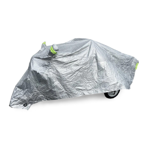 Vízálló XL méretű tricikli takaró, poliészterből, méretek 2510 x 1250 x 850 mm, Advento/Maxi modellekhez. Az Energy Adventure XL vízálló ponyva megvédi Advento vagy Advento Maxi háromkerekűjét kültéri parkolás során. Teljesen lefedi a jármű szerkezetét