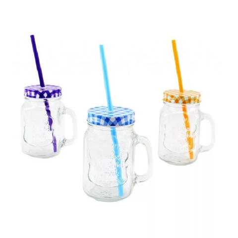 Kockás tetős, vidám üvegbögre szívószállal ellátva. Kiváló minőségű, masszív, erős anyagból készült, teához, limonádéhoz, gyümölcsléhez vagy akár forró csokihoz és egyéb italhoz is használható. Kényelmes fogantyúja lehetővé teszi a biztonságos fogást. Nem