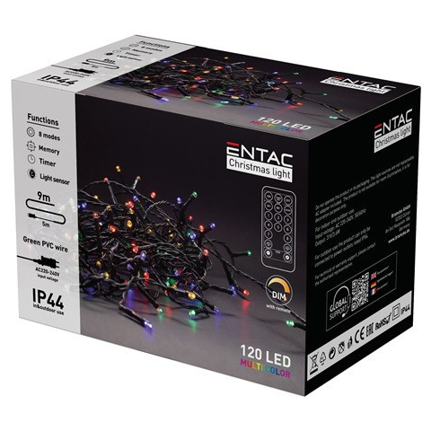 Entac Karácsonyi IP44 120 LED Füzér Színes 9m Távirányítóval