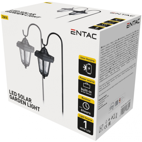 Entac Kerti Szolár Függő Lámpa Vas állvánnyal 750mm 1 LED 2db/csomag – IP44 védelem. Ideális sokoldalú otthoni és irodai felhasználásra. Tartós, megbízható kivitel. Egyszerű használat és gyors eredmény. Entac Kerti Szolár Függő Lámpa Vas állvánnyal 750