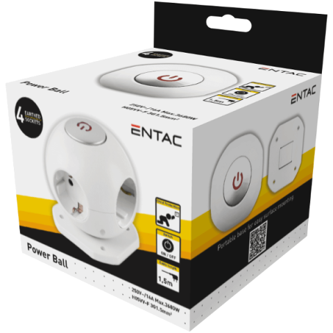 Entac Gömb Elosztó 4 Foglalattal, Kapcsolóval 1.5m 3G1.5 – 3680 W, IP20 védelem. Ideális több eszköz biztonságos áramellátásához otthon, irodában vagy műhelyben. Biztonságos csatlakoztatást nyújt több készülékhez. Ideális háztartásban, irodában és műhelyb