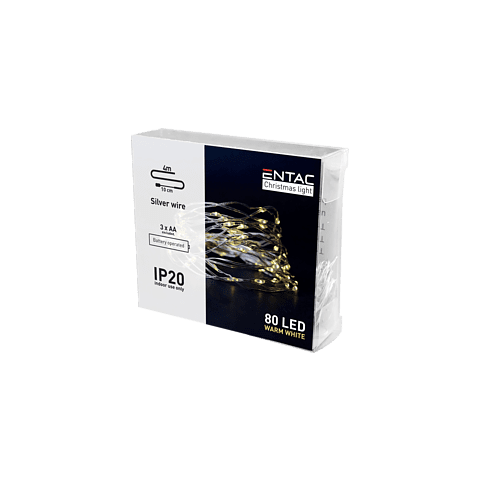 1 kép    Entac Karácsonyi beltéri drótfüzér, 80 LED, meleg fehér, 4m (3x AA) (ECL-S80WW)