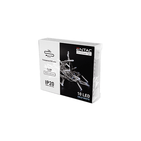 1 kép    Entac Karácsonyi beltéri füzér 10 LED, hideg fehér, 1m (2x AA) (ECL-10CW)